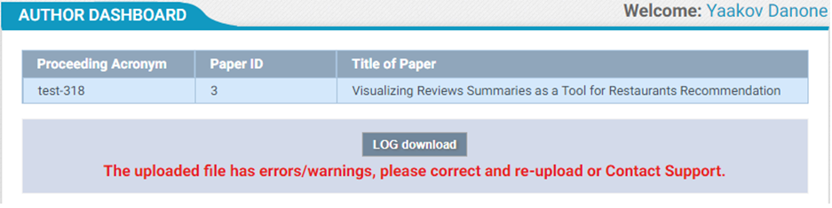 TAPS will perform an initial validation on the files and, if applicable, will show the error message(s) on your author dashboard as shown in the following screen shot: